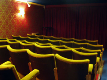 Cinema We are fortunate enough to have a permanent cinema in our clubrooms, it has a seating capacity of 54, featuring real cinema seats, rescued from a local cinema which was closing down. We have a reasonably large (~10 foot diagaonal) projection screen, complete with automated curtains. We are able to project both 4:3 aspect films, and 16:9 widescreen films. A surround-sound system is also installed, all of which are controlled from the sound-proof projection box. Our new state-of-the art projector can project films in a variety of formats - miniDV, DVD, VHS, while we also retain the ability to project cine film when required. |