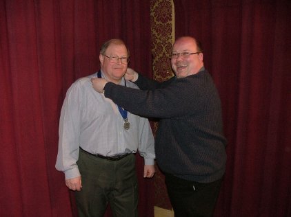 ![]() Outgoing President Sean Groat congratulates the 2010/2011 President, Peter Dick, as he hands over the medal of office. |